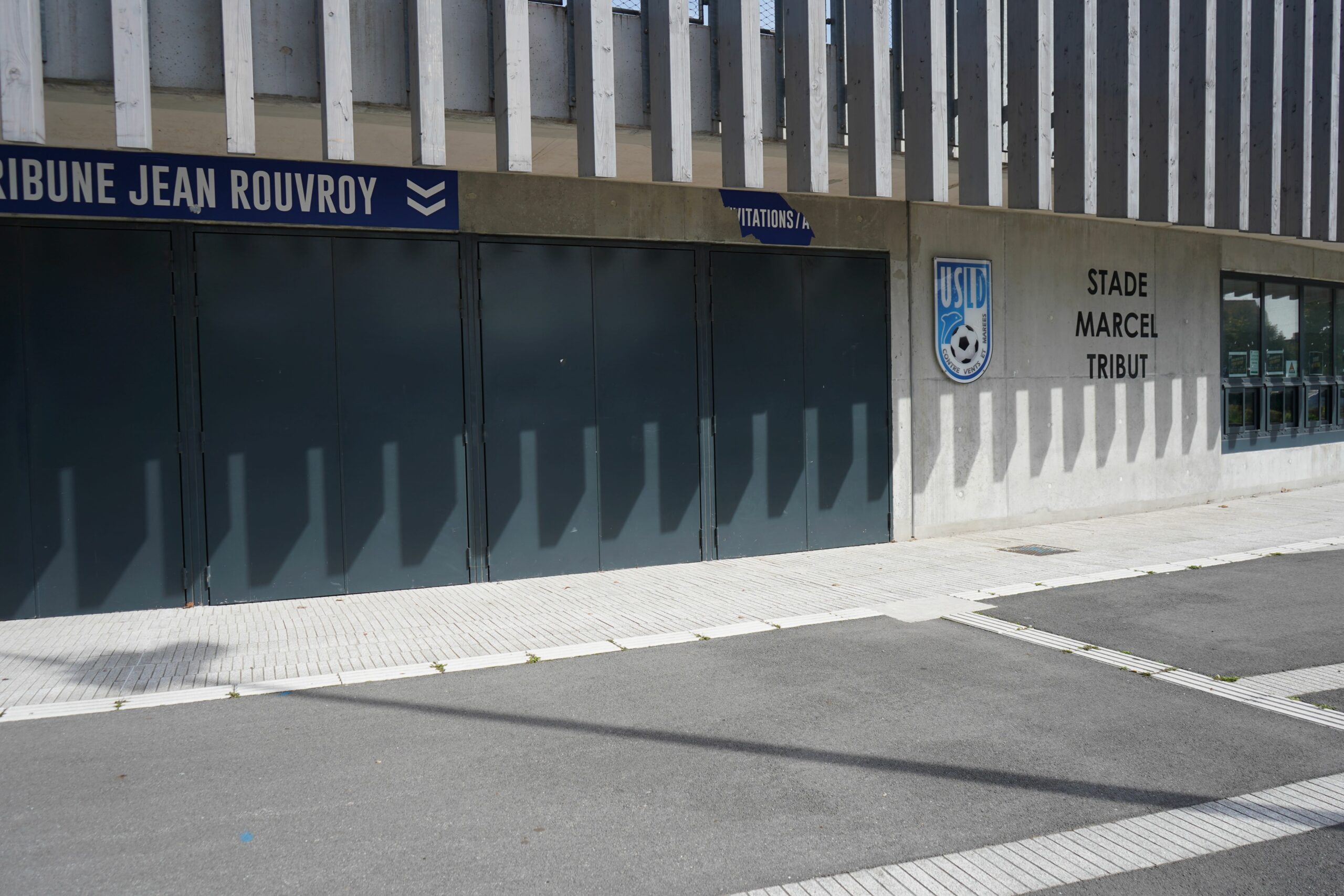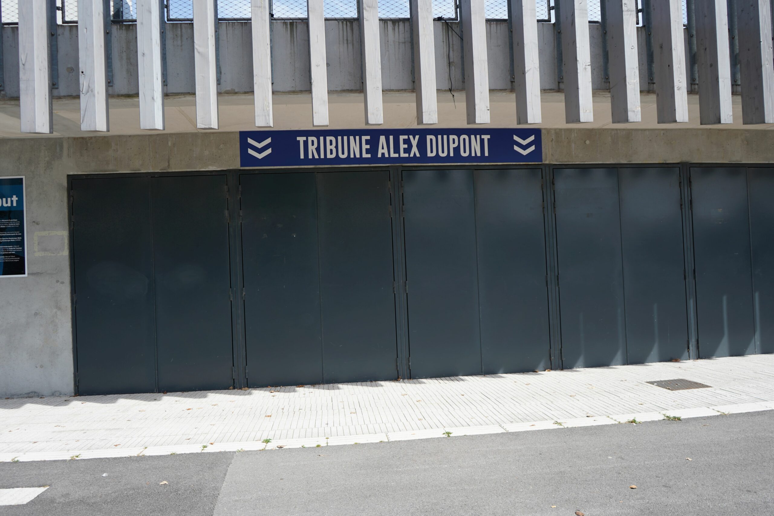 L’entrée dans Tribut continue de se faire par le parvis du stade, situé à l’angle de l’Avenue du Stade et de l’Avenue de Rosendaël.