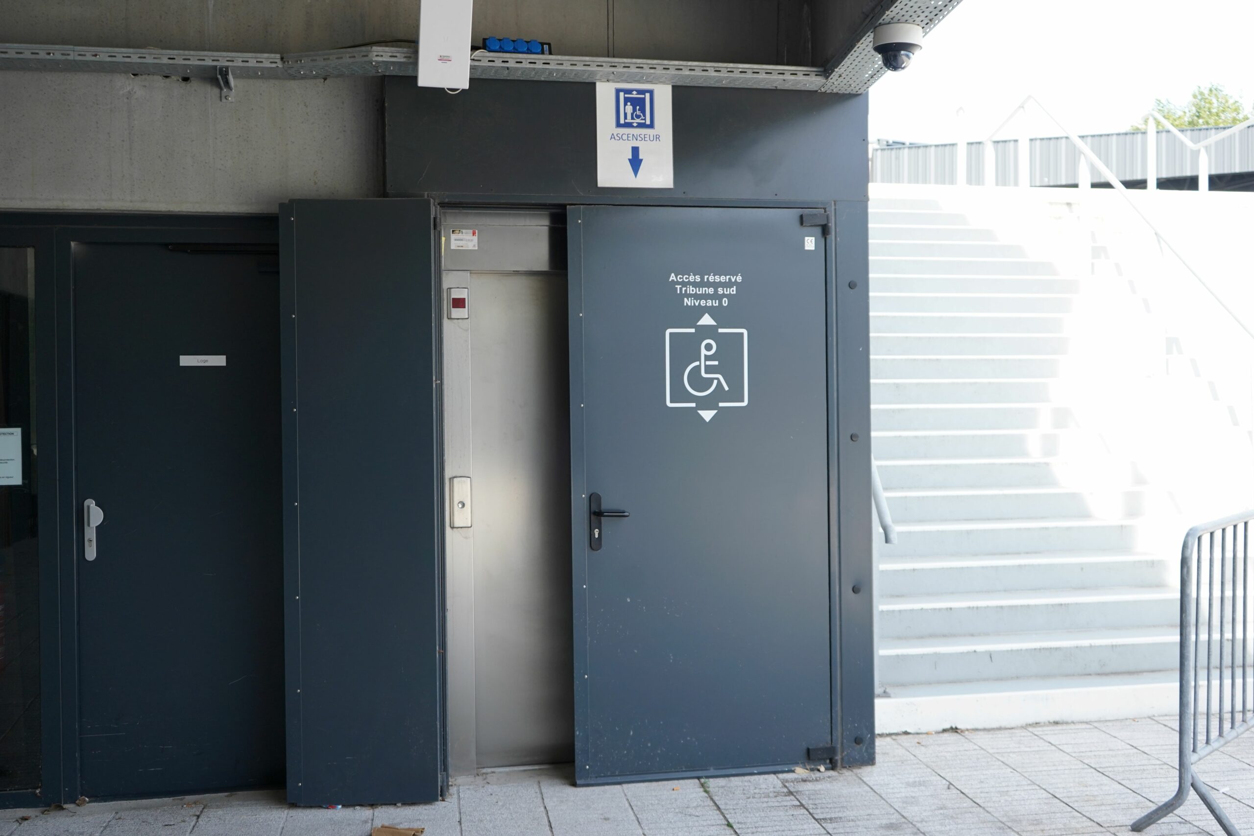 • Ascenseurs dans chaque tribune : Les tribunes Dupont & Rouvroy sont équipées d’ascenseurs. Deux bénévoles sont positionnés à l’ascenseur situé à l’entrée grand public pour assister les personnes à mobilité réduite lors de leur arrivée.