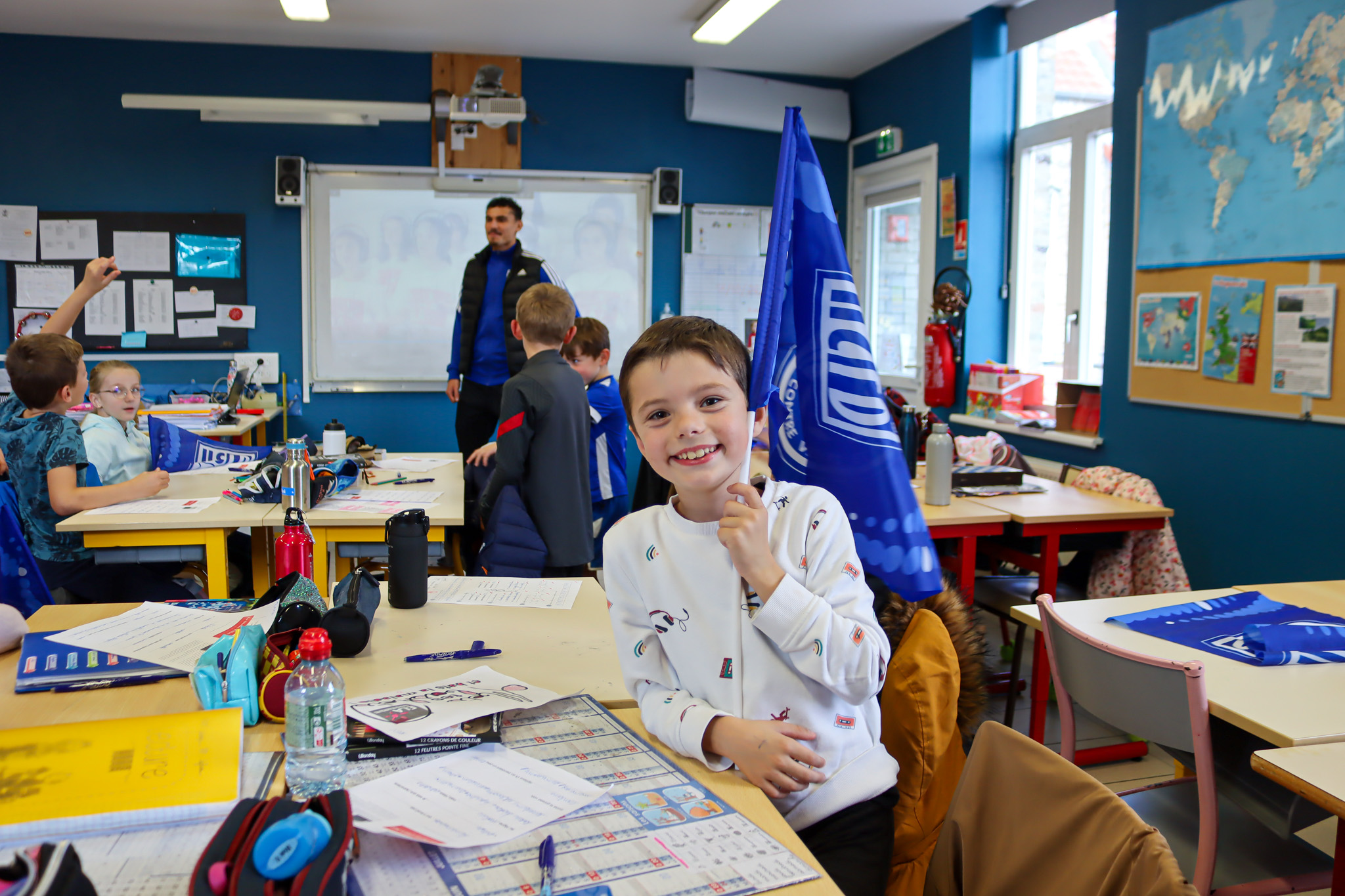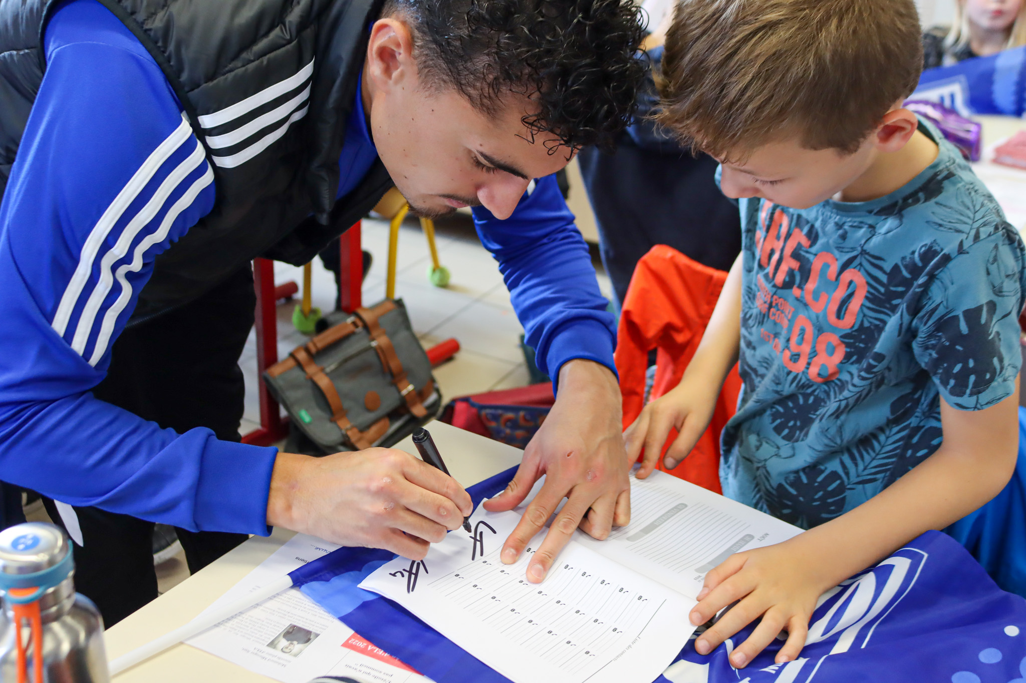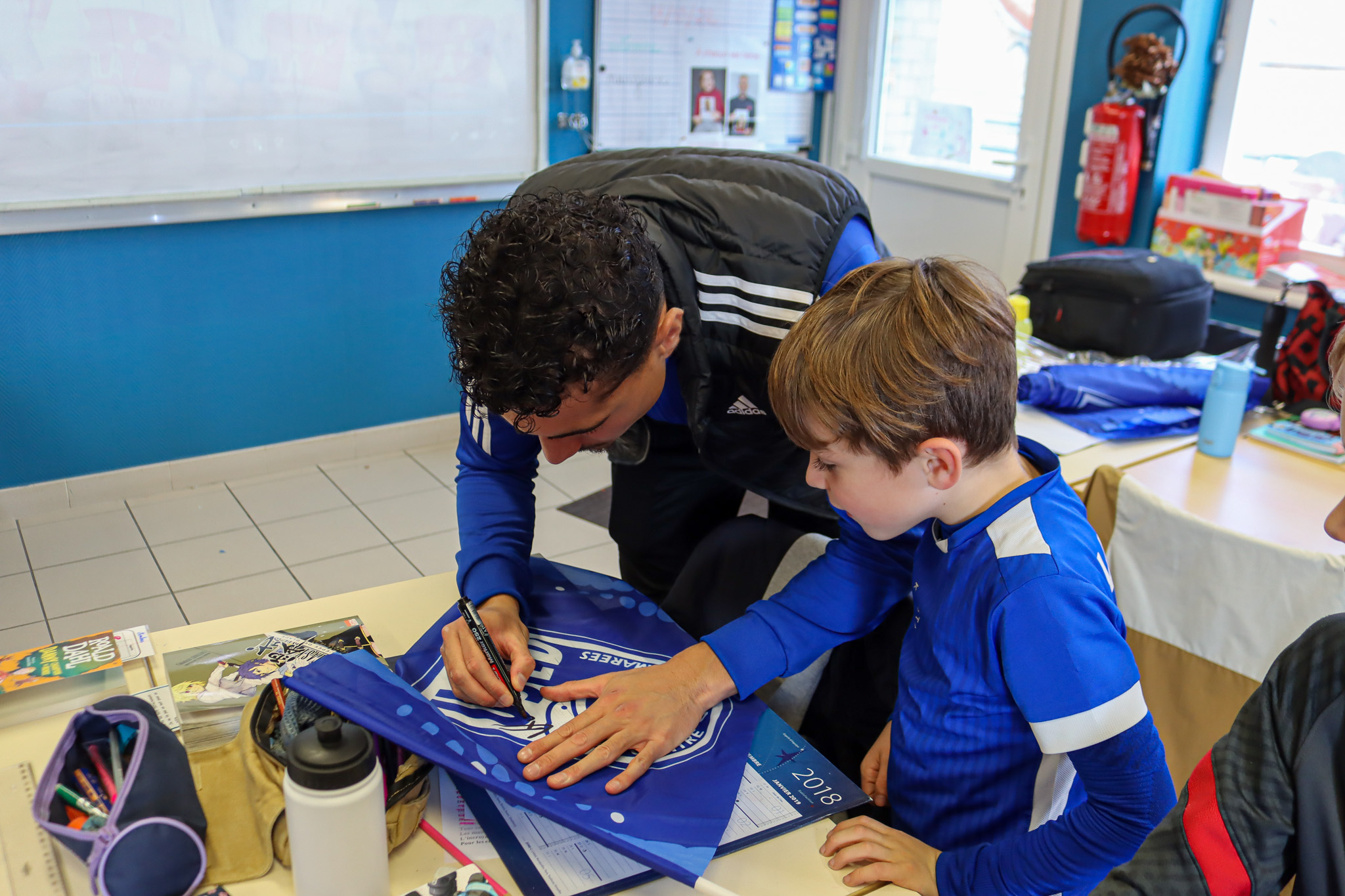 Pour l’occasion, notre défenseur Thomas VANNOYE s’est transformé en professeur pour une classe de CE2. Entre dictée et séances de dédicaces, nos jeunes écoliers ont passé un après-midi de sensibilisation enrichissante et inoubliable.
