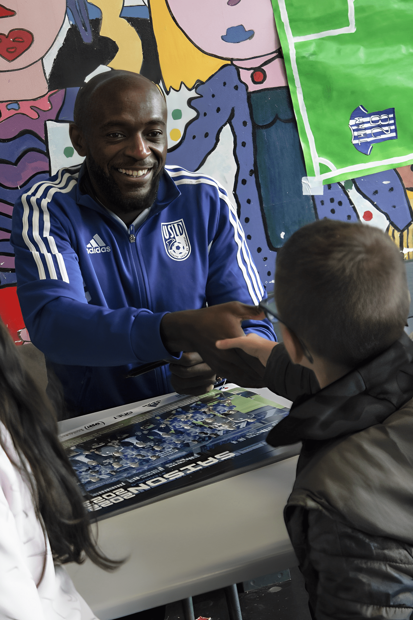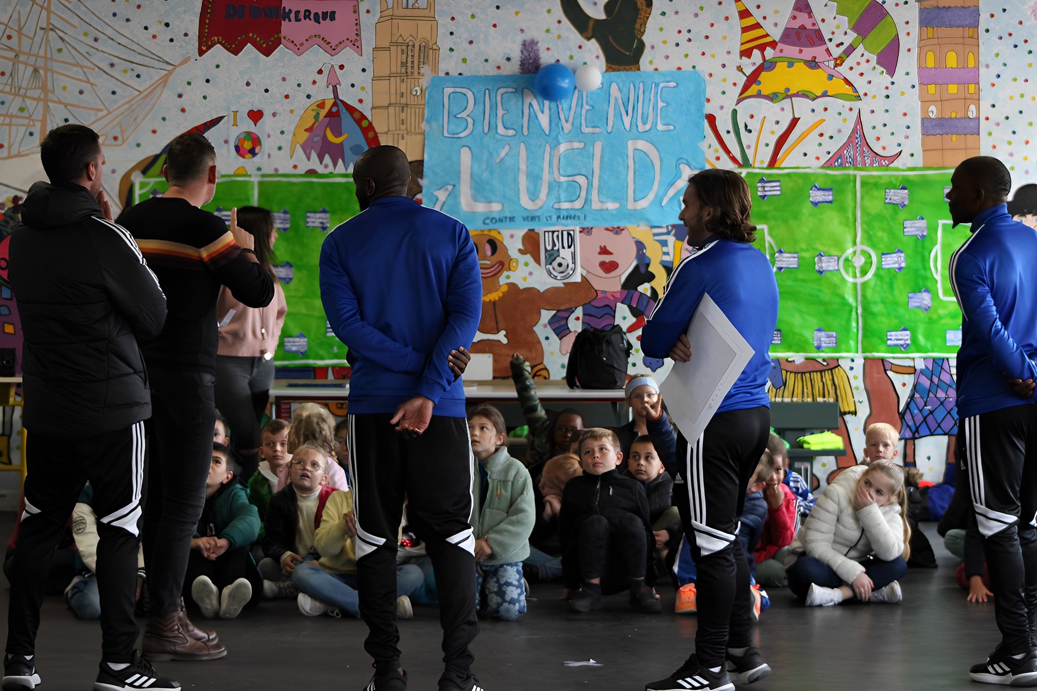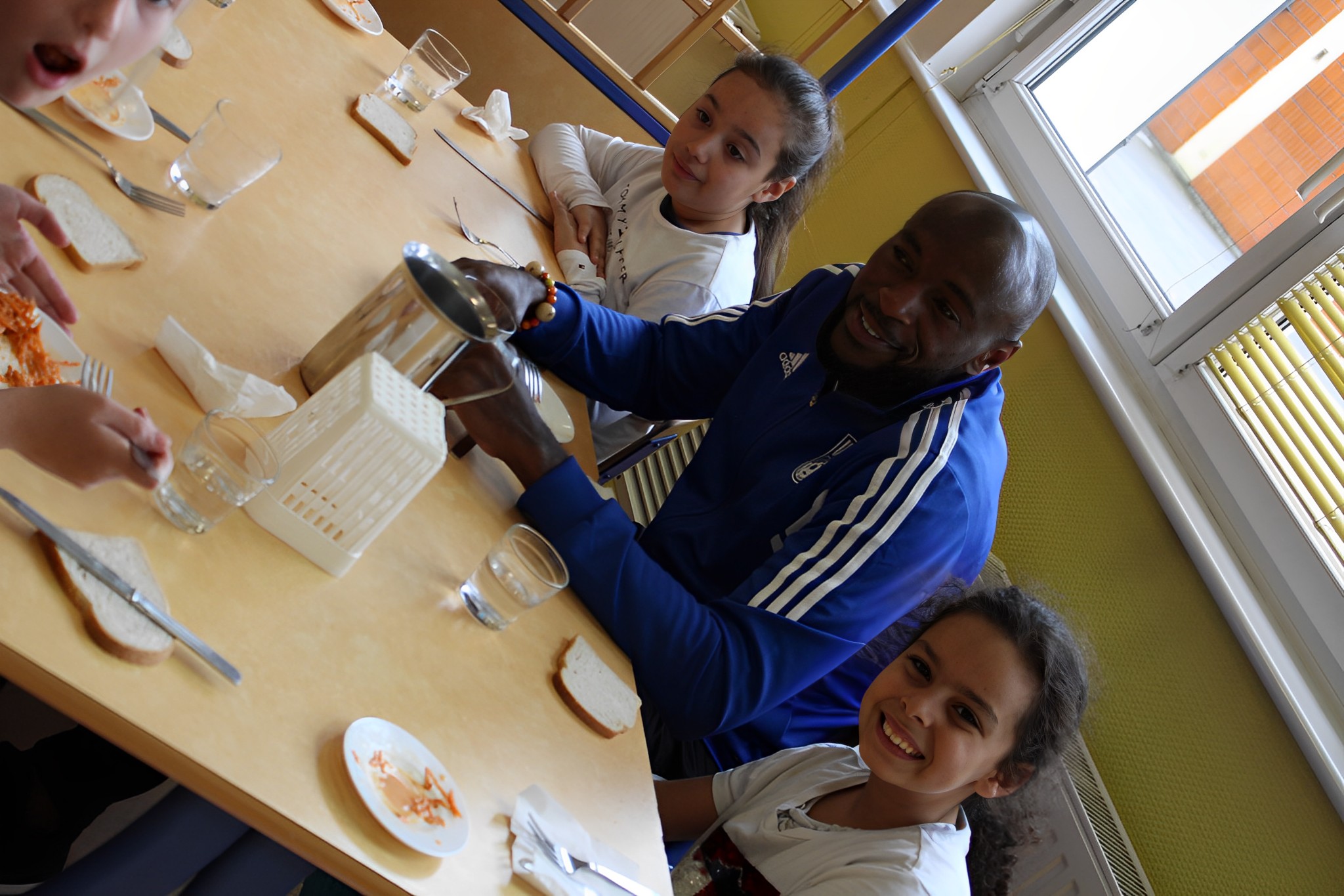 Ce mardi 4 octobre midi a signé le début des déjeuners sportifs. En effet, Yohan Bilingi, Julien Anziani, Yannick Mbone ainsi que Benjamin Rytlewski notre coach adjoint se sont déplacés à l’école Lucien Maillard à la rencontre des enfants qui déjeunent au restaurant scolaire. Un moment très attendu par les enfants qui leur ont réservé un accueil des plus chaleureux. Décoration, danse et cadeaux souvenirs, nos jeunes écoliers s’y étaient préparés.