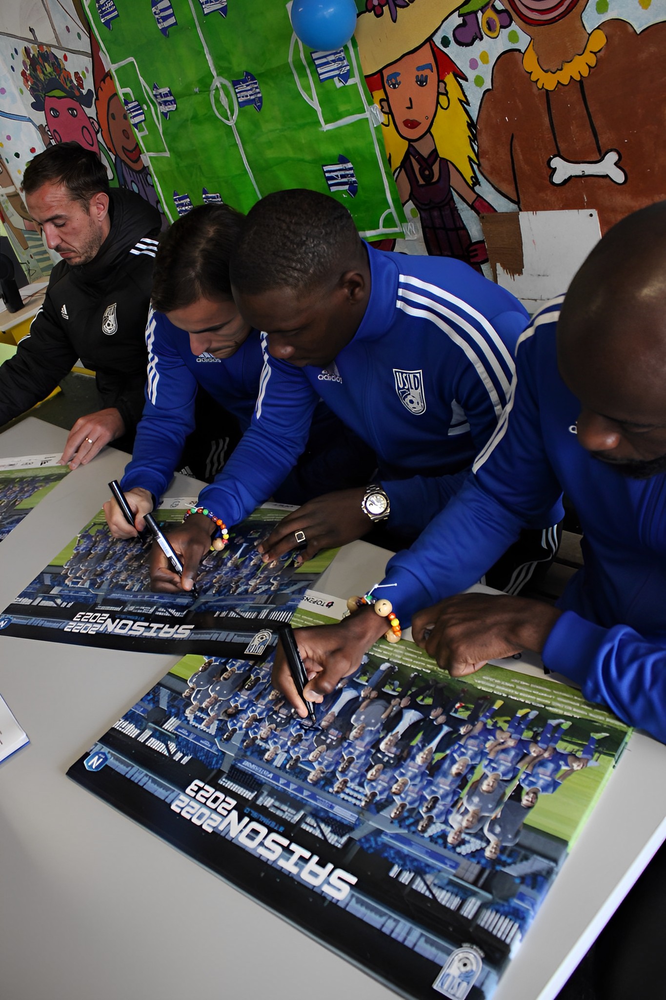 Après cela nos joueurs ont pu partagé une séance de football avec les enfants pour finir par un repas partagé dans la joie et la bonne humeur. Bien évidemment nous n’étions pas venu les mains vides car chaque enfant à pu repartir avec un poster dédicacé par nos trois joueurs ainsi qu’une place pour le match du 21 octobre contre Sedan !