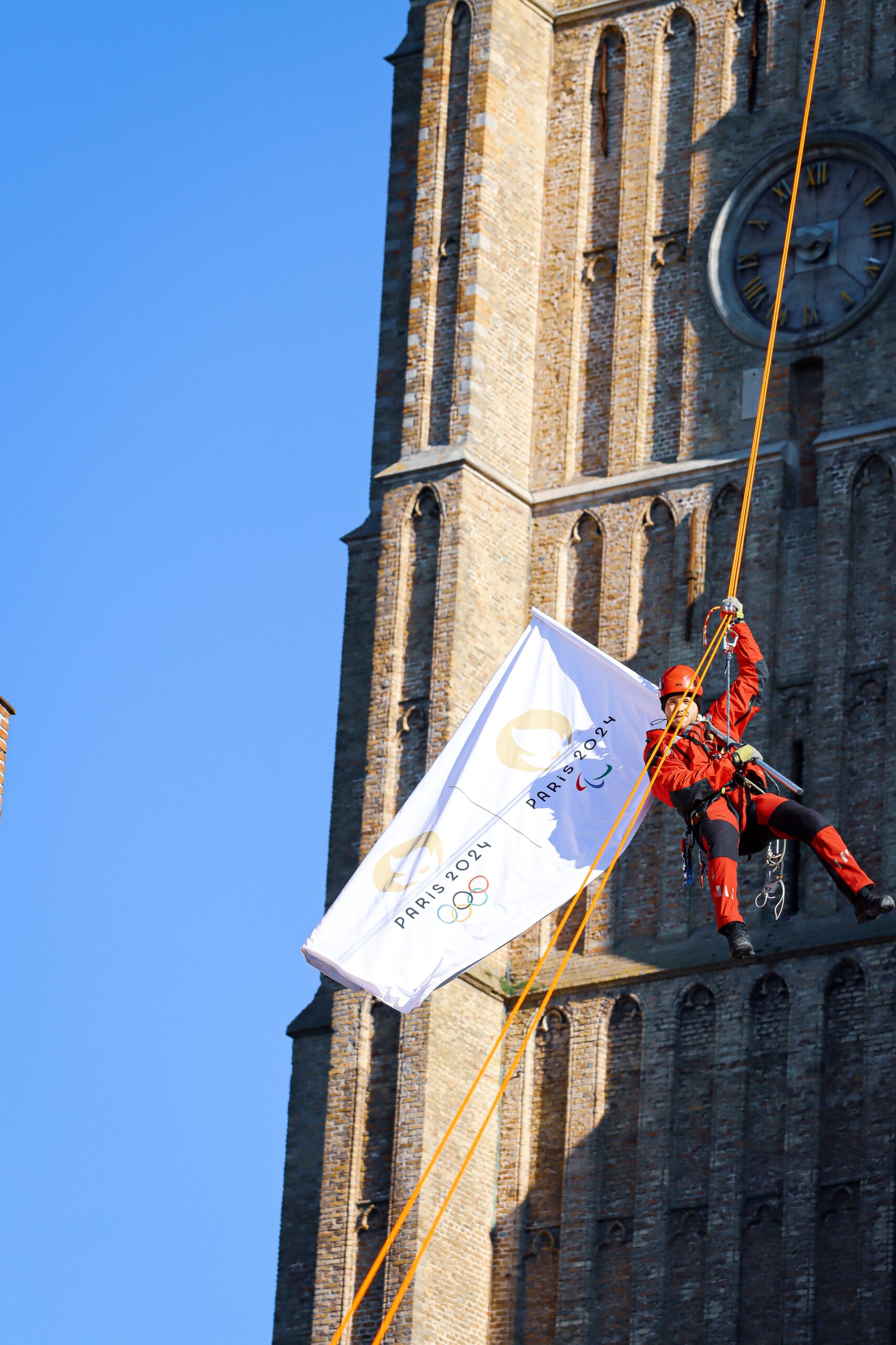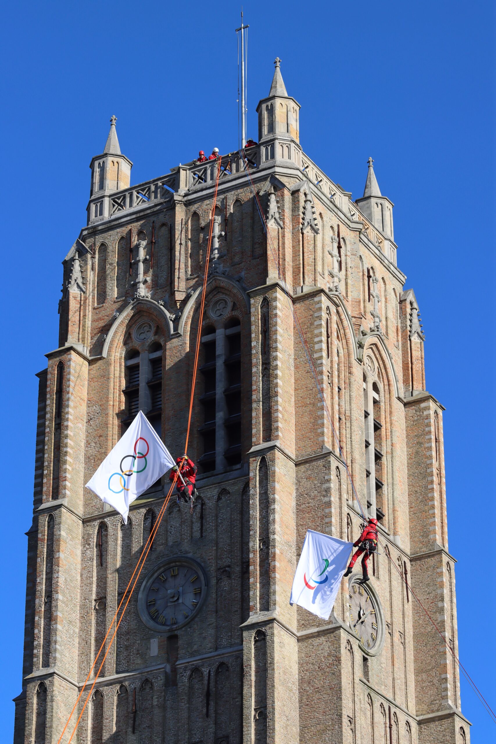 Descendus en rappel du Beffroi de Dunkerque, les drapeaux ont ensuite fait le tour de l’agglomération. Pour l’occasion, 650 enfants ont profité du stade des Flandres et ont foulé la pelouse du stade Tribut pour clôturer cette belle journée !
