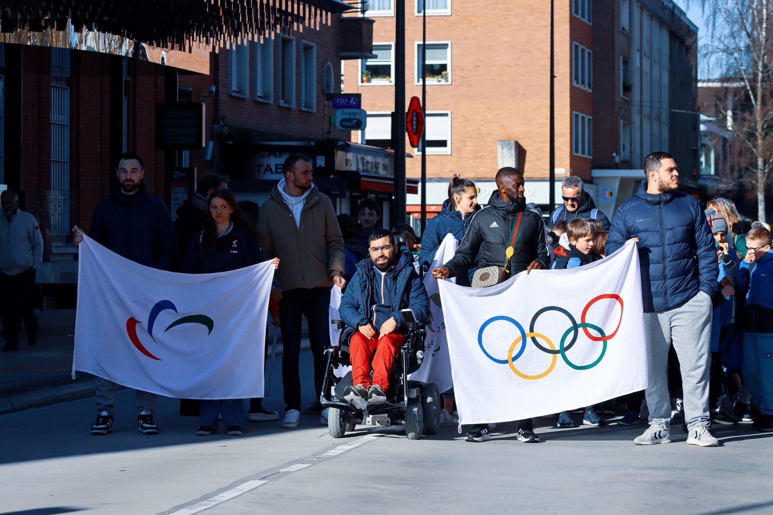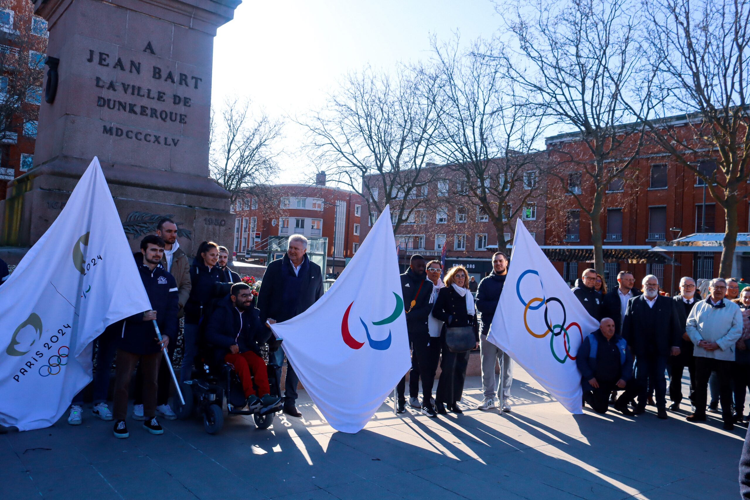 Ce lundi 3 avril, la ville de Dunkerque a eu la chance d’accueillir la Tournée des Drapeaux, action menée à travers toute la France par Paris 2024, sur la place Jean Bart. C’est sous un grand soleil que 650 enfants accompagnés par les sportifs professionnels de l’USLD, l’USDK et Les Corsaires ont défilé dans les rues de Dunkerque en portant fièrement les drapeaux des Jeux Olympiques et Paralympiques ainsi que celui de Paris 2024.
